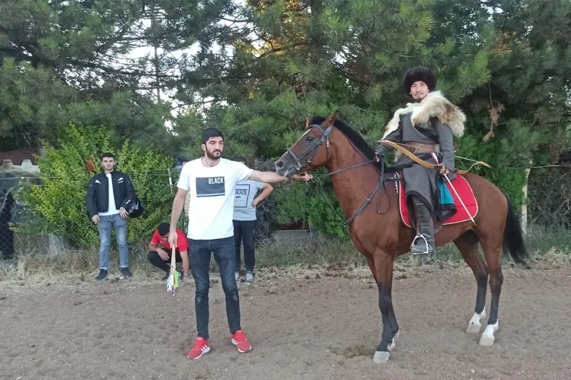 Eskişehir'de ikamet eden Selçuk Uğurluel, oğlu Atahan Uğurluel için sünnet düğünü tertip etti. Düğünde alışılmışın dışında misafirlere eski Türk toplumlarında yapılan atlı gösteriler sunuldu. Düğüne gelen misafirlere sürpriz olan organizasyon kalabalığın beğenisini kazandı. At üzerinde ok atma, at binme, kılıç hareketleri gibi 5 bin yıllık Türk toplumuna ait figürleri, kurulan alanda izleyenleri adeta geçmişte yolculuğa çıkardı. Normal bir düğünle karşılaşacaklarını sanan ama eski Türk töresine ait kıyafetlerle yapılan etkinliği izleyenlerin bazıları ise cep telefonu ile bu anları kayda alırken, kalabalığın coşkuyla koşan atlar hayranlıkla izlediği gözlendi. Diğerlerinden farklı düzenlenen düğünde, atla yapılan hareketlerde eski Türk yaşamından izleri belirgin bir biçimde izleyenlere yansıtıldı. Yaklaşık 1 saat süren gösteri ile mest olan misafirler eğlencenin geri kalanı için salonuna geçti.