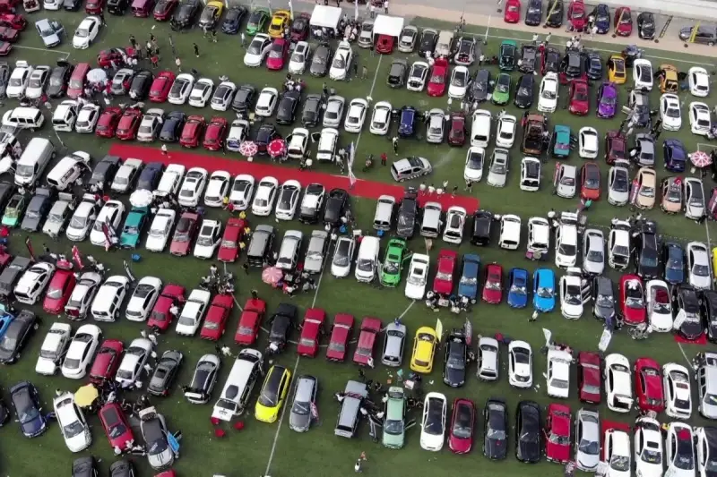 Etkinliğin yapıldığı alan ve araçların renkli görüntüleri ise havadan görüntülendi.