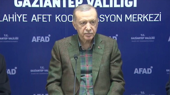 Cumhurbaşkanı Erdoğan, Kahramanmaraş merkezli depremlerin ardından incelemelerde bulunmak ve çalışmaları yerinde görmek üzere MHP Genel Başkanı Devlet Bahçeli ile geldiği İslahiye Afet Koordinasyon Merkezi'nde açıklamada bulundu.