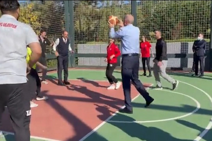 Cumhurbaşkanı Erdoğan, Cuma namazını Ümraniye'de kıldıktan sonra açılışı yapılacak Ümraniye Millet Bahçesi'ne geçti. Cumhurbaşkanı Erdoğan Ümraniye Millet Bahçesi açılışına giderken basketbol oynayan gençleri görüp maçlarına katıldı. Cumhurbaşkanlığı Sözcüsü İbrahim Kalın da Erdoğan'a eşlik etti.