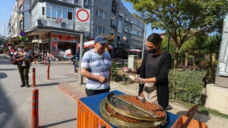 Seferihisar'da yaşayan şambali ustası Erol Ulus, 1960'lı yıllarda bakır tepsi ile başladığı mesleğini bir müddet sonra üç tekerlekli bisiklete taşıdı.