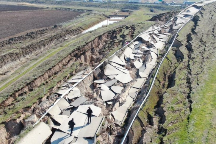 Kahramanmaraş merkezli iki büyük deprem 10 ilde binlerce kişinin hayatını kaybedip, yaralanmasına neden oldu. Binlerce binanın yıkıldığı depremin büyüklüğünü gösteren görüntüler ise gelmeye devam ediyor. İlk depremin merkez üssü Pazarcık ilçesi sınırlarında yer alan Adıyaman-Şanlıurfa-Gaziantep Otoyolu'nun üzerinden geçen Köşeli köyünün de yolu yerle bir oldu. Yolda ve çevresindeki arazide oluşan devasa çatlaklar depremin büyüklüğünü bir kez daha gösterdi. Bölge İHA ekibi tarafından dron ile havadan görüntülendi.