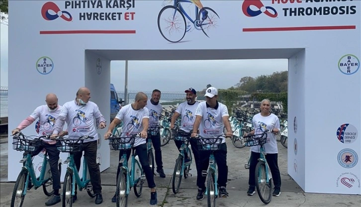 "Dünya Tromboz Günü" dolayısıyla hareketsiz yaşama ve buna bağlı oluşan pıhtı rahatsızlıklarına karşı dikkati çekmek için düzenlenen etkinlikte doktorlar pedal çevirdi.
