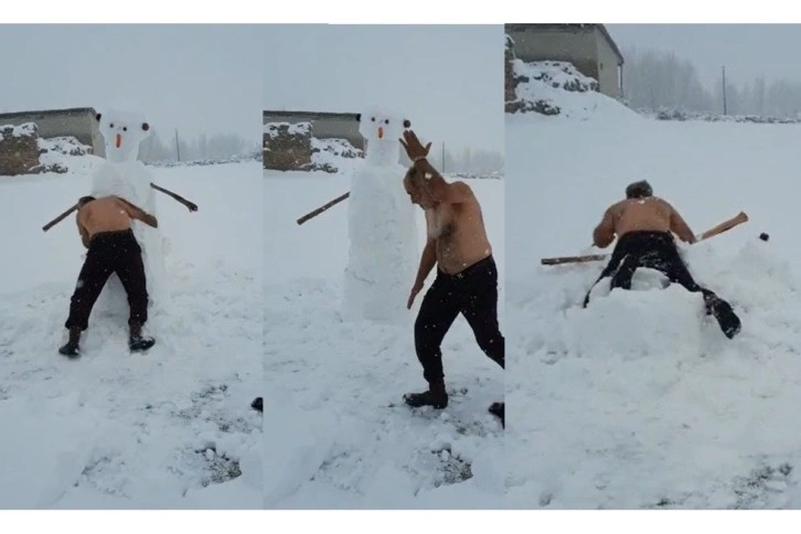 Sivas'ta geçtiğimiz günlerde etkili olan kar yağışı kenti beyaza bürümüş birçok köy yolu ulaşıma kapanmıştı. Kar yağışı hayatı olumsuz etkilerden kimileri de karın keyfini çıkardı. Zara ilçesine bağlı Adamfakı köyünde yaşayan 66 yaşındaki Recep Ekici karı eğlenceye çevirdi. Ekici ve bazı köy sakinleri dondurucu soğukta önce donan nehrin üzerinde kayarak eğlendi. Recep Ekici daha sonra önceden yaptığı kardan adamla güreş tuttu. Karın üzerinde kıyafetlerini çıkaran Ekici daha sonra kardan adamın üzerine atlayarak tek hamlede yıktı. Renkli görüntülerin oluştuğu o anlar cep telefonu kamerasıyla kaydedildi.