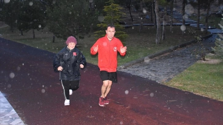 Münevvere Yılmaz, AA muhabirine, kışın gelmesiyle ortaya çıkan olumsuz hava koşullarına aldırmadan antrenmanlarını sürdürdüğünü söyledi.