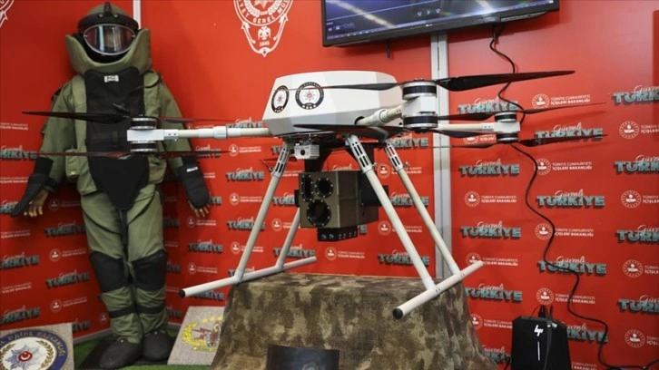 AA muhabirine dronla ilgili bilgi veren Komiser Yardımcısı Aykut Eroğlu, Eren'in lazer silahlı bomba imha dronu olduğunu belirtti.