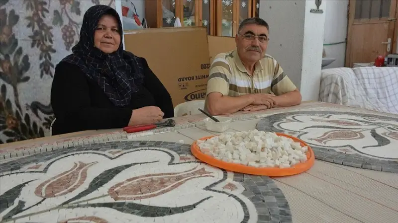 Mehmet Balaban, AA muhabirine, emekli olduktan sonra eşi Mahire Balaban ile evlerinin altındaki bölümü atölyeye çevirdiklerini, burada mermer mozaik çalışmaları yaparak boş zamanlarını değerlendirdiklerini söyledi.
