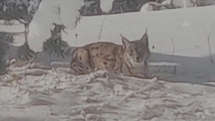 Erzurum'un Oltu ilçesinde nesli tükenme tehlikesi altında olan vaşak, karla kaplı arazide görüntülendi.