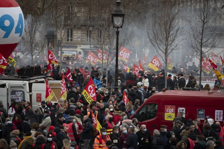 Fransa genelinde 170 noktada, enflasyon artışı yüzünden alım gücü düşen emekliler, memurlar, işçiler sokağa indi. Sendikaların organize ettiği gösterilerde, başkent Paris'teki protestocular tarihi Bastille Meydanı'ndan Maliye Bakanlığına yürüdüler. Hükümetin asgari ücreti ve sosyal yardımları arttırmasını talep eden göstericiler, sık sık Cumhurbaşkanı Emmanuel Macron'u istifaya davet ederken, “Kahrolsun kapitalizm” sloganı attı. Gösteriye, iki haftadır grev yapan öğretmenler ile lise öğrencileri de destek verdi.