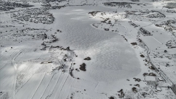 Gece eksi 12 dereceleri gören beldedeki Emre Gölü'nün yüzeyi buz tuttu. Buz kalınlığı ise yaklaşık 15 santimetre ölçüldü.