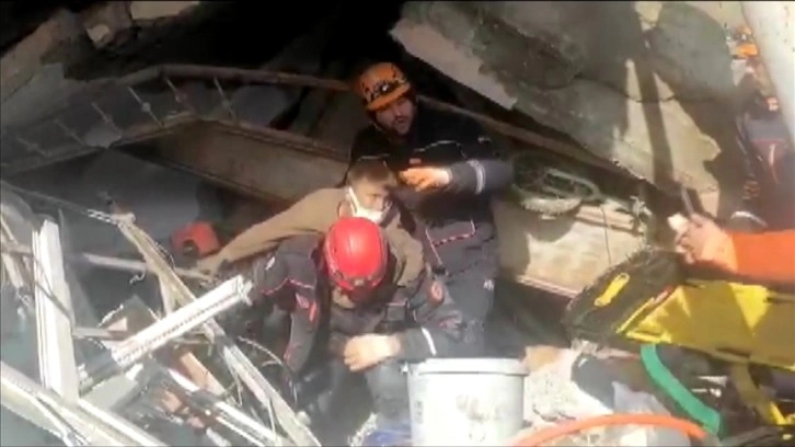 Bu sırada İlmaz, enkazda bulunan ve adının Abdülkerim olduğu öğrenilen çocukla sohbet etti.