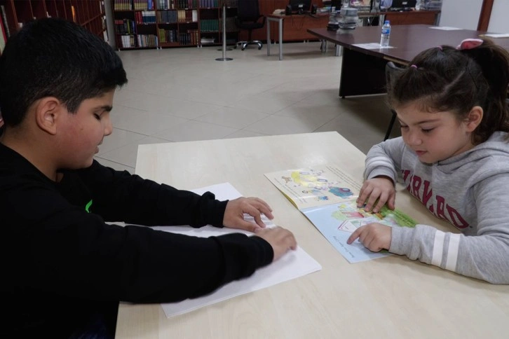 “Görme engelli, resimleri ona betimliyorum”Görme engelli arkadaşı Braille Alfabesi ile hazırlanan kitabı okurken, kitaptaki resimleri betimleyen 8 yaşındaki Miray Buğlem Avcı, “Burada dil terapistine gidiyordum, dört tane harfi söyleyemiyordum. İkinci sınıf öğrencisiyim. Görme engelli bir arkadaşa kitap okuyorum. Ben dinliyorum, yanlışlarını düzeltiyorum. Onun kitabında resimler olmadığı için ben o resimleri ona betimliyorum” şeklinde konuştu.“Çok güzel bir his”Bu tarz etkinliklerin insanların birbirini anlaması için çok güzel çalışmalar olduğunu ifade eden 11 yaşındaki görme engelli Harun Bozkuş, “Buraya gelmemin sebebi Miray, bana kitabın içindeki resimleri anlatıyor ve yanlışlarımı düzeltiyordu. Miray bana bu resimleri betimlediği, ben de resimleri göremediğim için hayal dünyamda onları canlandırabiliyorum. Bu çok güzel bir his” ifadelerini kullandı.Hasibe Karadağ