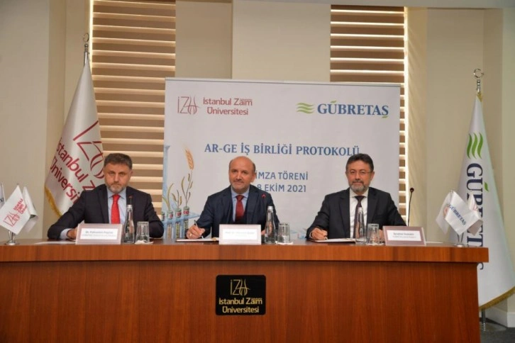 GÜBRETAŞ sürdürülebilir tarım alanında milli ekonomiye yeni katma değerler sağlayabilmek için son yıllarda yürüttüğü Ar-Ge çalışmalarını üniversite iş birlikleri ile kuvvetlendiriyor. Şirket Ar-Ge çalışmalarının önemli bir sacayağını oluşturan üniversite ve sanayi iş birliklerine bir yenisini daha ekledi. Sanayi ve üniversite iş birliği kapsamında Sabahattin Zaim Üniversitesi ile yeni bir iş birliği protokolü imzaladı. 8 Ekim Cuma günü üniversite kampüsünde gerçekleşen imza töreni, GÜBRETAŞ Yönetim Kurulu Başkanı Dr. Fahrettin Poyraz, Genel Müdür İbrahim Yumaklı, Sabahattin Zaim Üniversitesi Rektörü Prof. Dr. Mehmet Bulut'un katılımlarıyla gerçekleşti. İş Birliği Protokolü imza töreninde tarımsal araştırma ve geliştirme alanında üniversite-sanayi iş birliği kapsamında ortak projeler yürütüleceği de belirtildi.