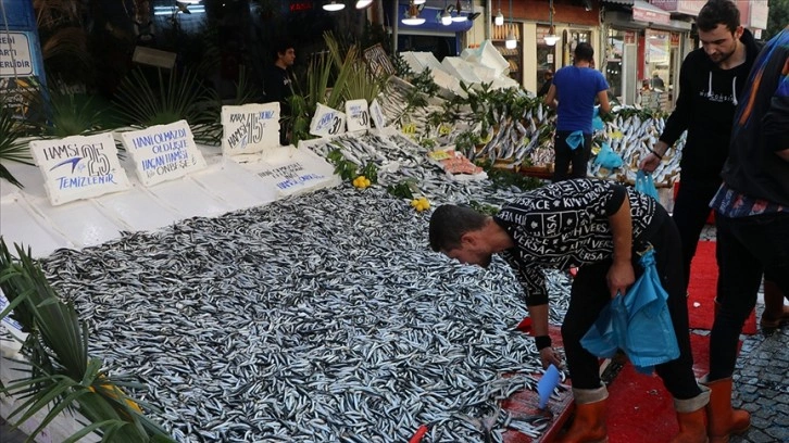 Balık Pazarı esnafından Hamza Köksoy, AA muhabirine denizlerdeki hamsi bolluğunun fiyatlara yansıdığını söyledi.