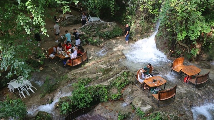 Ziyaretçilerden İsa Açıkgöz, sıcak havadan bunaldıkları için şelaleye geldiklerini belirterek, "Mersin'de sıcaktan kavrulmuştuk ama burası cennet gibi. Gün boyu burada vakit geçiriyoruz." diye konuştu.