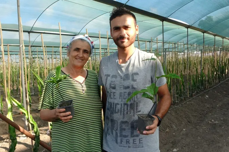 Genç çiftçi ağabey-kardeş annelerinden de destek alarak bölgede ilk kez ekilen Pasiflora (çarkıfelek) bitkisi ve ejder meyvesi ile üretime başladı. Ağabey-kardeş tropikal meyve üretim merkezlerinden olmayı hedefliyor.