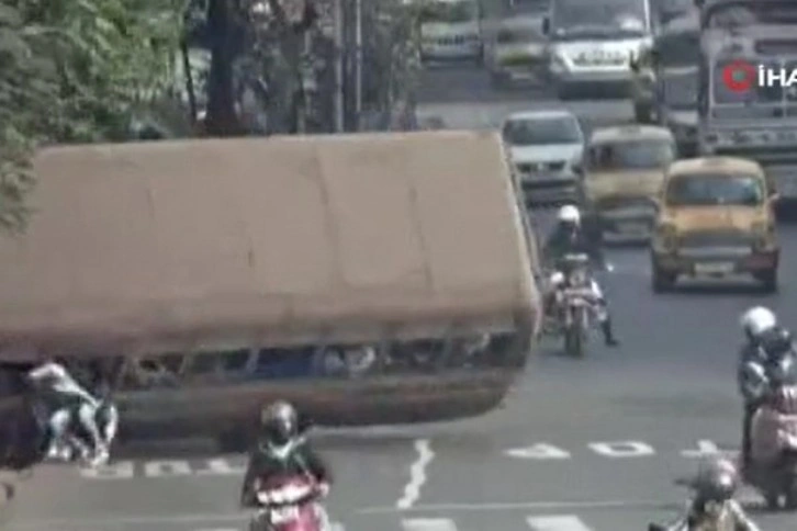 Hindistan'ın Batı Bengal eyaletine bağlı Kalküta kentinde seyir halindeki bir otobüsün lastiği patladı. Otobüs savrulduğu sırada camdan yere düşen bazı yolcular, devrilen otobüsün altında kaldı. Facianın eşiğinden dönülen olayda can kaybı yaşanmazken, yaşları 9 ila 17 arasında değişen 7'si çocuk toplam 27 kişi yaralandı. Otobüsün şoförü olay yerinden kaçarken, otobüste 50 kişi olduğu öğrenildi.