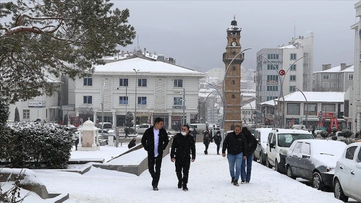 Sivas'ta etkili olan kar yağışıyla kent merkezi beyaza büründü.