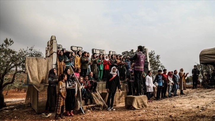 Kamplarda zor şartlar altındaki çocuklar, "Zeytin Bağı" adlı kampta Dünya Çocuk Halkları Günü dolayısıyla düzenlenen tiyatroyla doyasıya eğlendi.