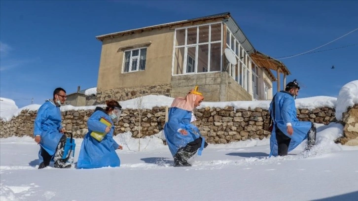 Kar, tipi ve soğuk havanın etkili olduğu bölgede araçların çıkamadığı yerlere zaman zaman yürüyerek gitmek zorunda kalan ekipler, ev ev, kapı kapı dolaşarak aşılarını yaptırmayanlara ulaşıyor.