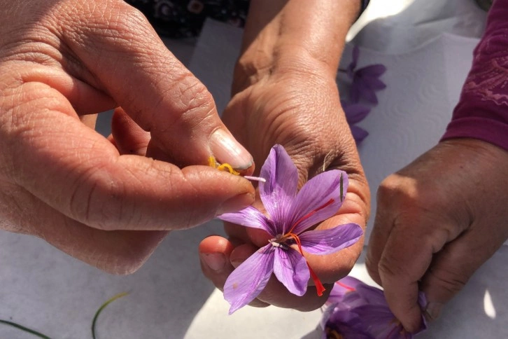 4 yılda bir dikilen Safran çiçeği içindeki kırmızı ve sarı çiçekler, kozmetik gıda ve ilaç sanayinde kullanılıyor.