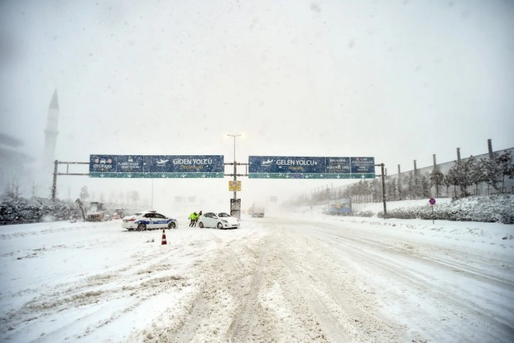Yoğun kar yağışı ve tipi nedeniyle İstanbul Havalimanı'na giden yollar ulaşıma kapandı.