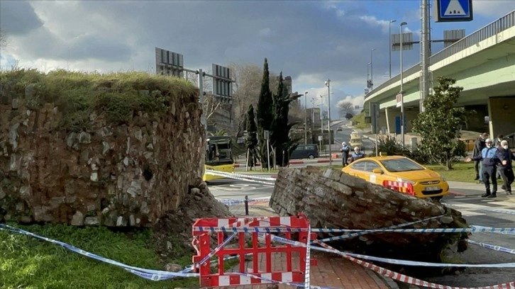 Vatan Caddesi'nin Edirnekapı sapağındaki yol kenarındaki boş arazide bulunan tarihi surların bir kısmı yıkılarak yola devrildi.