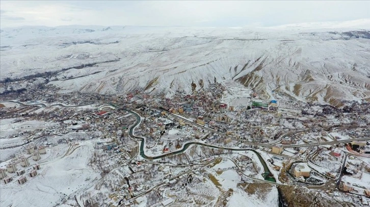 Adıyaman'ın Çelikhan ilçesinde etkili olan kar yağışı, ilçeyi beyaza bürüdü.