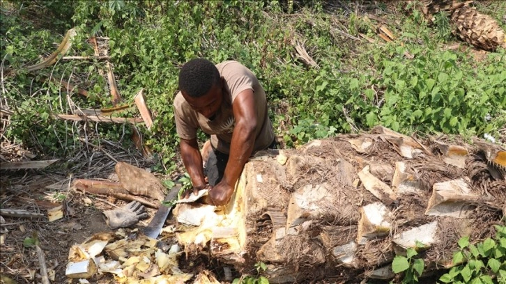 Palmiye solucanları için ormanlardaki palmiye ağaçlarını kestiklerini belirten Ntsama, ağaç gövdelerini yaklaşık 20 gün beklettikten sonra solucanları toplamaya başladıklarını ifade etti.