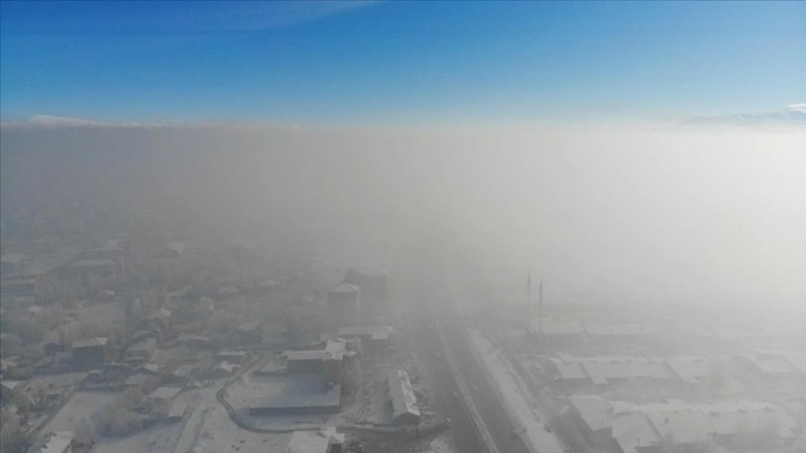 Büyük kısmı sis altında kalan şehrin sis ve karla bütünleşen manzarası Anadolu Ajansı (AA) ekibince drone ile görüntülendi.