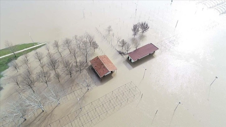 Kırklareli'nin Pehlivanköy ilçesinde, debisi artan Ergene Nehri'nin taşması sonucu tarım arazileri su altında kaldı.