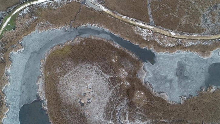AA ekibi donan gölleri havadan drone ile görüntüledi.