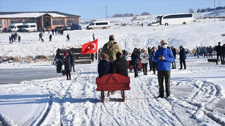 Doğu Anadolu'nun en büyük ikinci gölü olan Çıldır, hafta sonu buz üstünde gezmek ve atlı kızak keyfini yaşamak isteyenlerin uğrak yeri haline geldi.