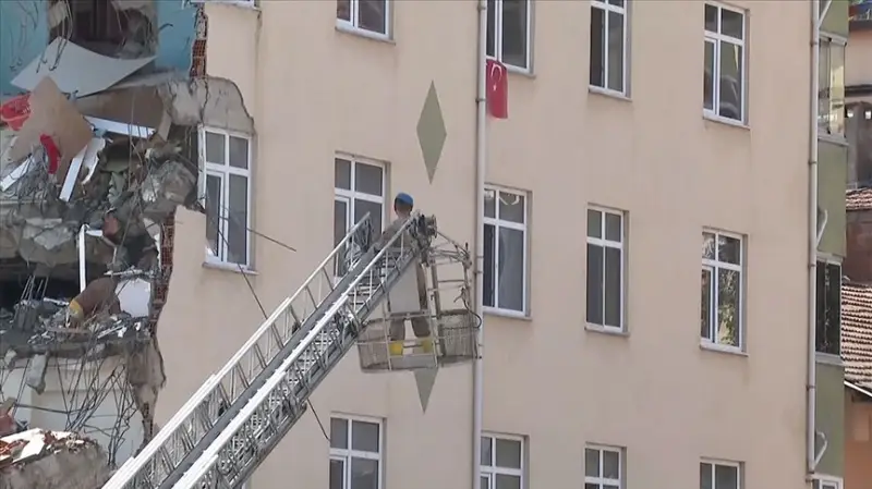 İlçede 11 Ağustos'ta yaşanan selden etkilenen ve aldığı ağır hasar sonucu yıkımı başlatılan Yıldız Apartmanı'nın üçüncü katındaki Türk bayrağı çevredekilerin dikkatini çekti.