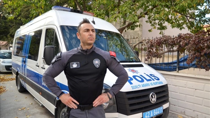 Konya Emniyet Müdürlüğü bünyesinde su altı arama ve kurtarma ekibinde görevli dalgıç polis memuru Mustafa Güneş, vücut geliştirme sporuyla da uğraşıyor.