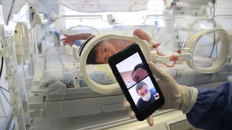 Ayrı hastanelerde tedavi gören anne ve baba, yeni doğan yoğun bakım servisinde gözetim altında bulunan bebekleri ile üçlü konferans görüşmesi yöntemiyle buluştu.