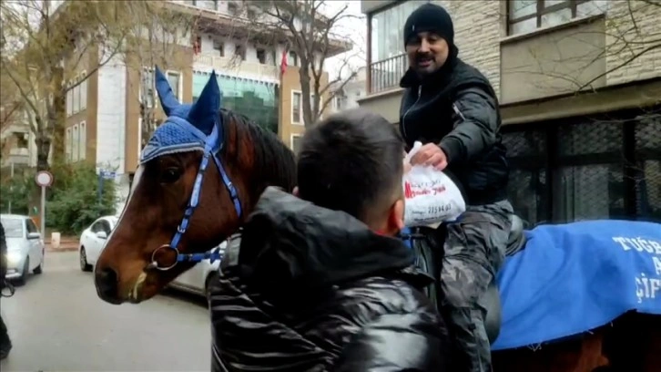 Yılmaz, daha sonra Ankaralıların yoğun ilgisi altında at üzerinde dükkanına döndü.