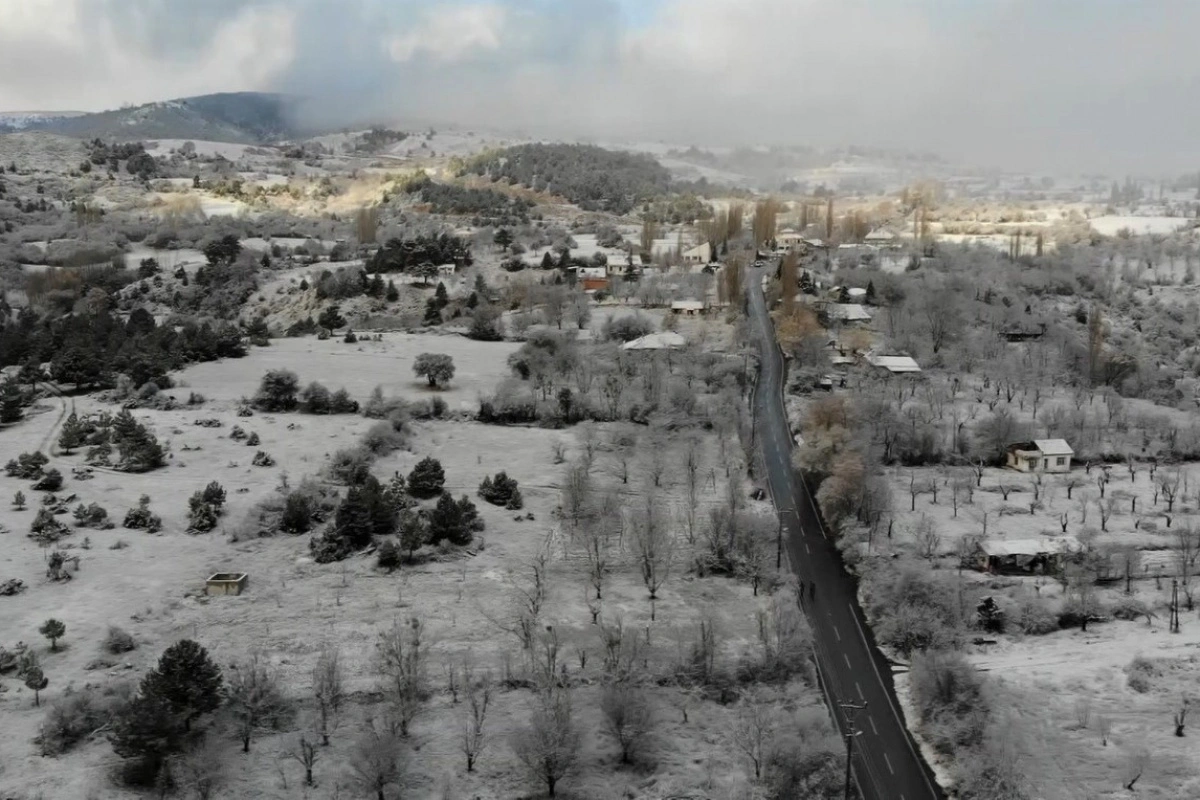 Kütahya'daki mevsimin ilk karı, İHA tarafından da havadan görüntülendi.