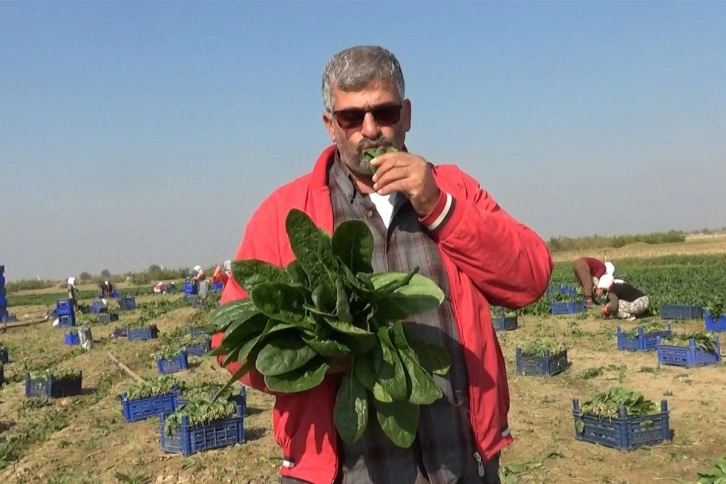“Yetiştirdiğimiz ıspanağı önce kendimiz tüketiyoruz” dedi, çiğ ıspanak yedi