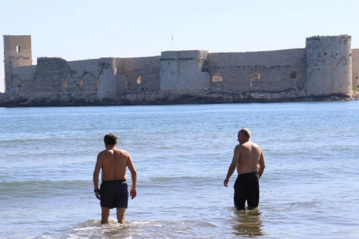 Şanlıurfa soğuk diye Mersin'e gelip denize girdi