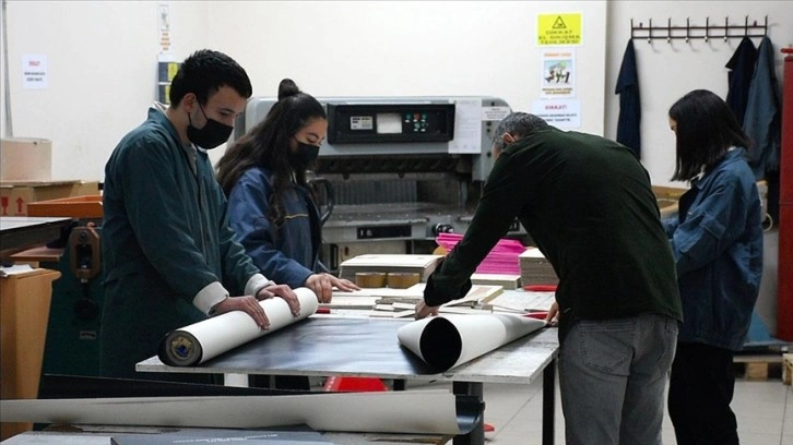 Matbaa öğretmeni Raif Çınar da istihdam için nitelikli üretim yapan öğrencilerin yetişmesi amacıyla mücadele verdiklerini, kamu kurumlarında ekonomik ömrünü tamamlamamış makineleri onararak kendilerine üretim bandı oluşturduklarını anlattı.