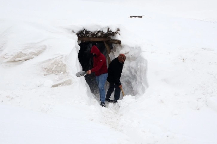 Kar yağışından dolayı bütün evlerin kar altında kaybolduğunu ifade eden köy sakinlerinden Eyüp Omur, ahırlara ulaşmak için tünelleri kullandıklarını söyledi.