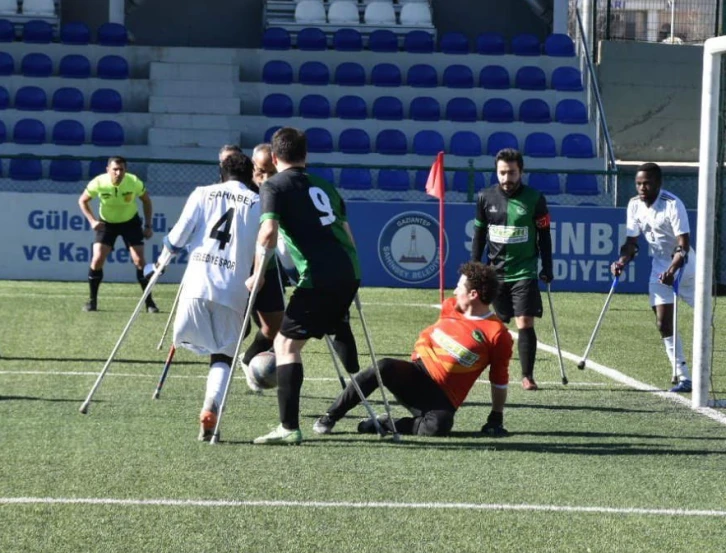 Şahinbey Belediye Spor Kulübü Ampute Futbol Takımı, kendi evinde Sakarya Bedensel Engelliler Spor Kulübü Ampute Futbol Takımı ile karşı karşıya geldi. Tribünleri dolduran taraftarının desteğini arkasına alan mavi beyazlı ekip Sakarya Bedensel Engelliler Spor Kulübü Ampute Futbol Takımı’nı 8-0 gibi farklı bir skorla mağlup ederek haftayı galibiyetle kapattı.