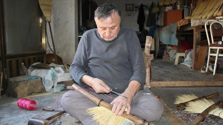 Necati usta 40 yıldır süpürge üretimiyle ekmek parasını kazanıyor