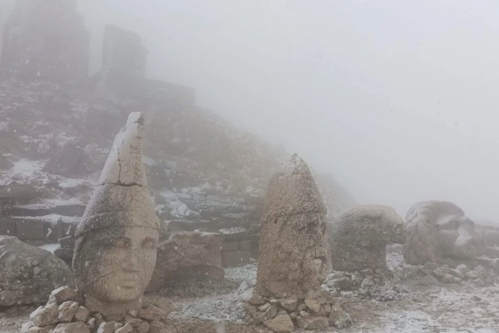 Her yıl binlerce yerli ve yabancı turistin ziyaret ettiği Nemrut Dağı, arkeologlar tarafından Dünya'nın 8'inci harikası olarak kabul ediliyor. Devasa heykellerin bulunduğu Nemrut Dağı, bu sezon düşen ilk kar ile birlikte beyazlarla kuşandı.