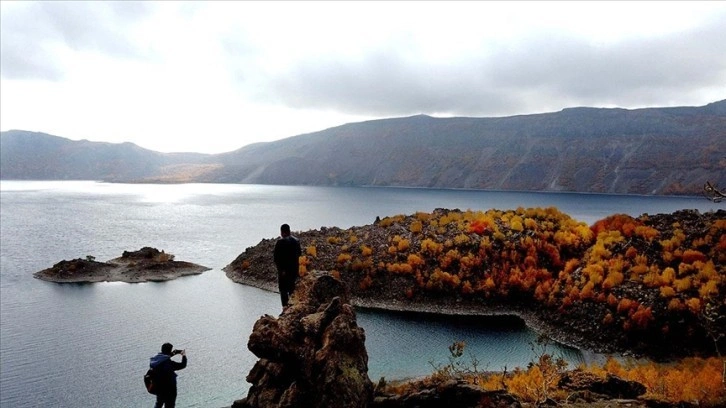 Nemrut Krater Gölü sonbahar renklerine büründü