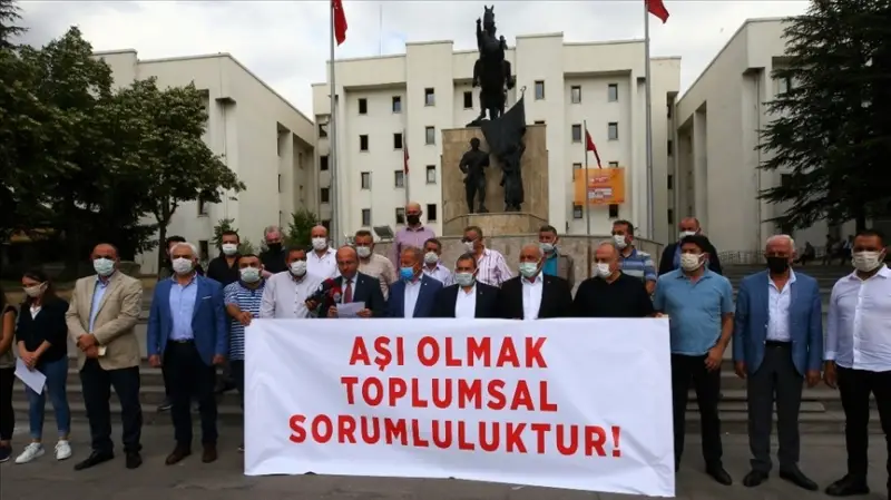 Valilik önünde bir araya gelen ve ellerinde "Aşı olmak toplumsal sorumluluktur" yazılı pankart taşıyan 14 sivil toplum kuruluşunun temsilcileri, il genelinde Kovid-19 vakalarının artış gösterdiğine dikkati çekti.