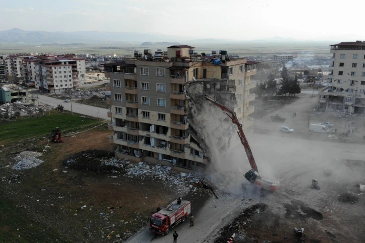 Öte yandan ilçede devam eden ağır hasarlı binaların yıkım çalışmaları ve deprem sonrası ilçede meydana gelen hasarın boyutu dron ile havadan görüntülendi.