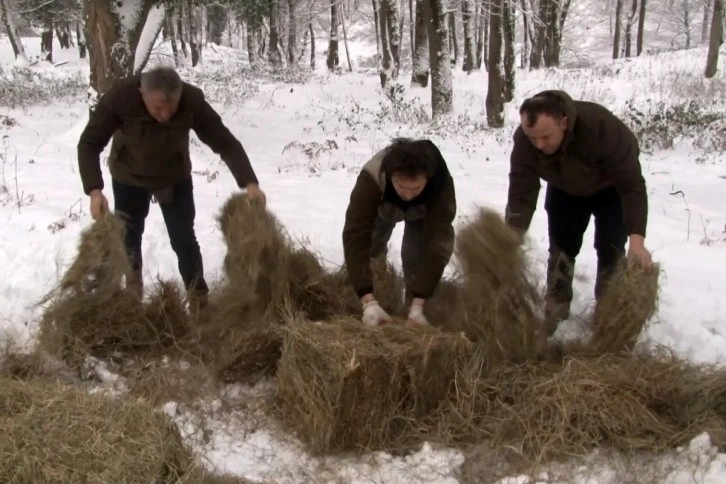 Tarım ve Orman Bakanlığı Doğa Koruma ve Milli Parklar 1. Bölge Müdürlüğü ekipleri, özellikle son günlerde yoğunlaşan kar yağışı nedeniyle zorlu kış şartlarında yaşamaya çalışan yaban hayvanları için ot, yonca, mısır, saman ve karma yem bıraktı.