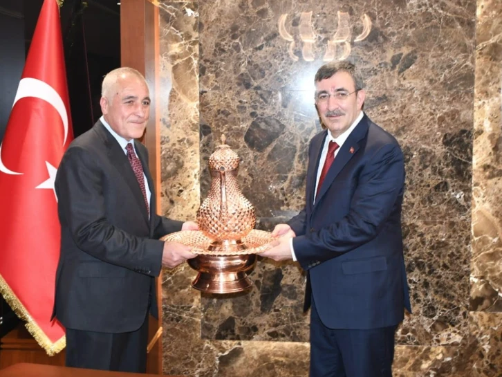 Cumhurbaşkanı Yardımcısı Cevdet Yılmaz, Gaziantep programı kapsamında Organize Sanayi Bölge Müdürlüğünde iş dünyasının temsilcileri ile bir araya geldi.